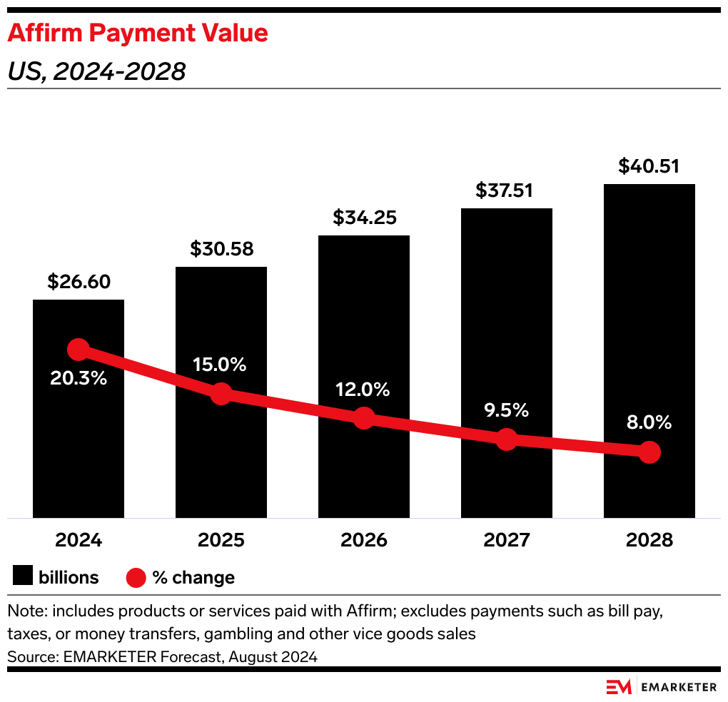 Why this matters: Securing this funding helps Affirm grow its BNPL volume. We expect Affirm’s BNPL payment value will total $30.58 billion in 2025, growing 15% YoY, per our forecasts.