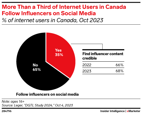 Key Stat: Sixty-eight percent of internet users in Canada find influencer content credible on social media.