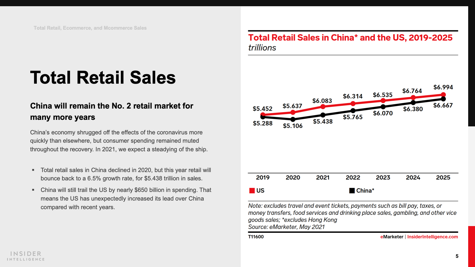 WHAT’S IN THIS REPORT? This report features our latest China forecasts for retail sales, retail sales by product category, retail ecommerce, mcommerce, social commerce, livestreaming commerce, livestreaming social commerce, digital buyers, and ecommerce by company.