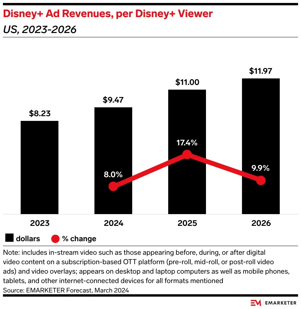 - Excluding ESPN+, Disney's streaming services achieved a significant milestone by reporting operating income of $47 million, with revenues up 13% to $5.64 billion.