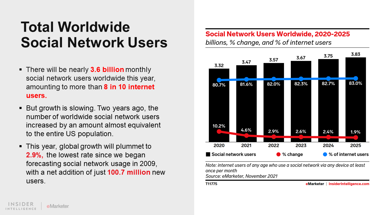 • What factors are driving a slowdown in global social network user growth in 2022?
