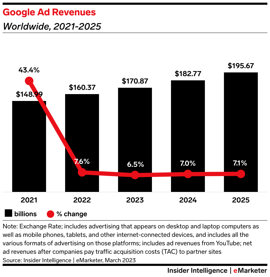 Yes, but: There was sizable growth in Google Cloud revenues, which jumped from $6.87 billion to $8.41 billion YoY, showing the company's growing foothold in that market.