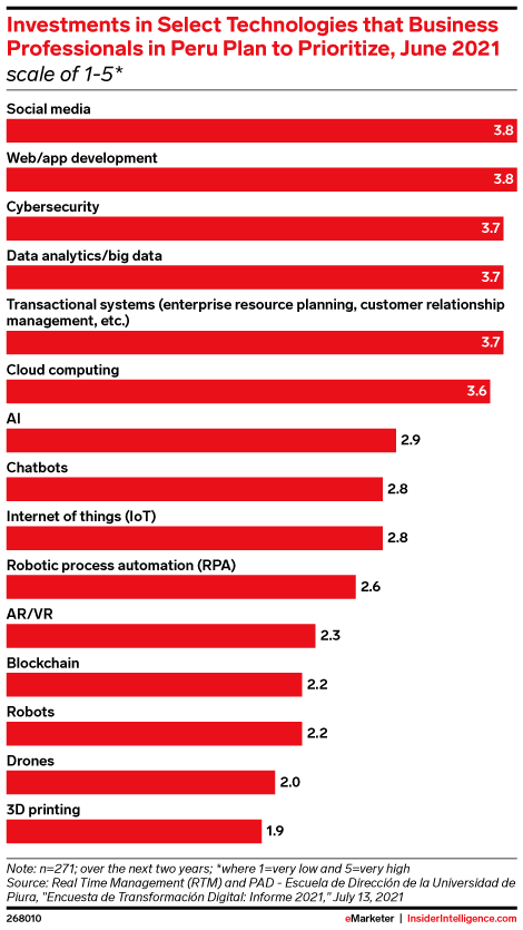 KEY STAT: Investments in social media are a top priority for companies in Latin America. In countries like Peru, business professionals ranked social media investments as one of their highest priorities over the next two years, tied with web and app development.