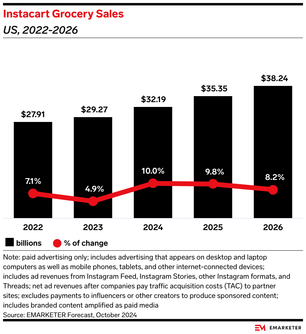 • We expect Instacart’s ad revenues to grow 8.8% this year to $1.05 billion