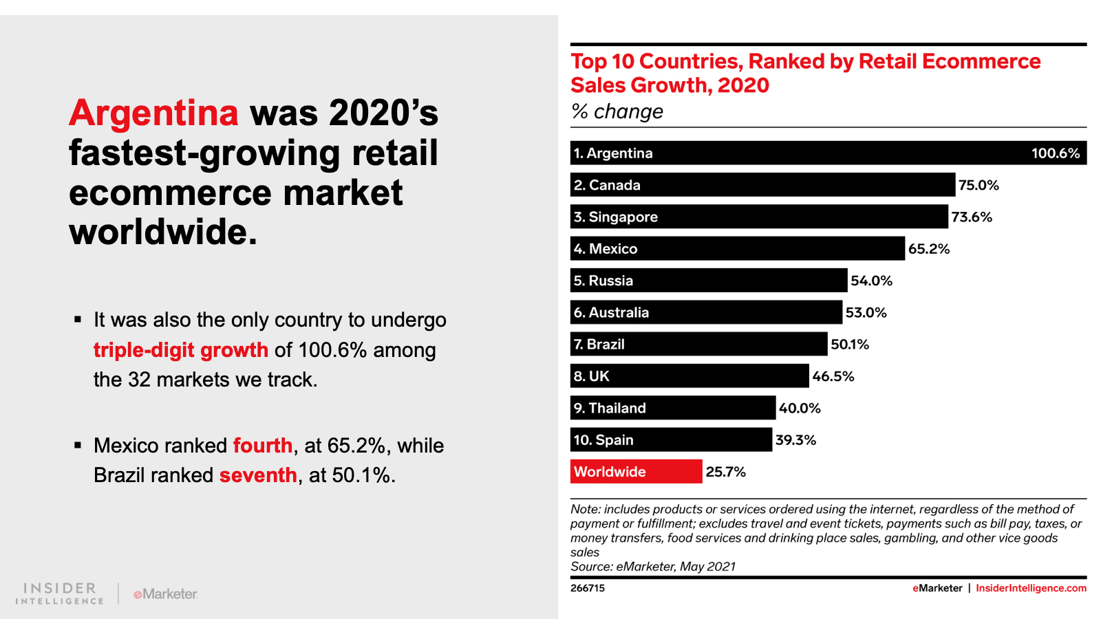 While 2020 will go down in history as one of the most tumultuous years for Latin America’s retail industry, it will also be remembered as the year when the region became the world's fastest-growing retail ecommerce market.
