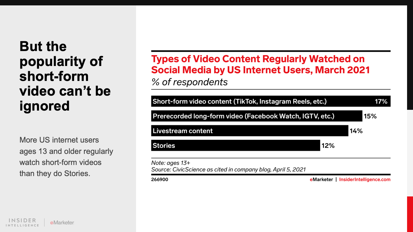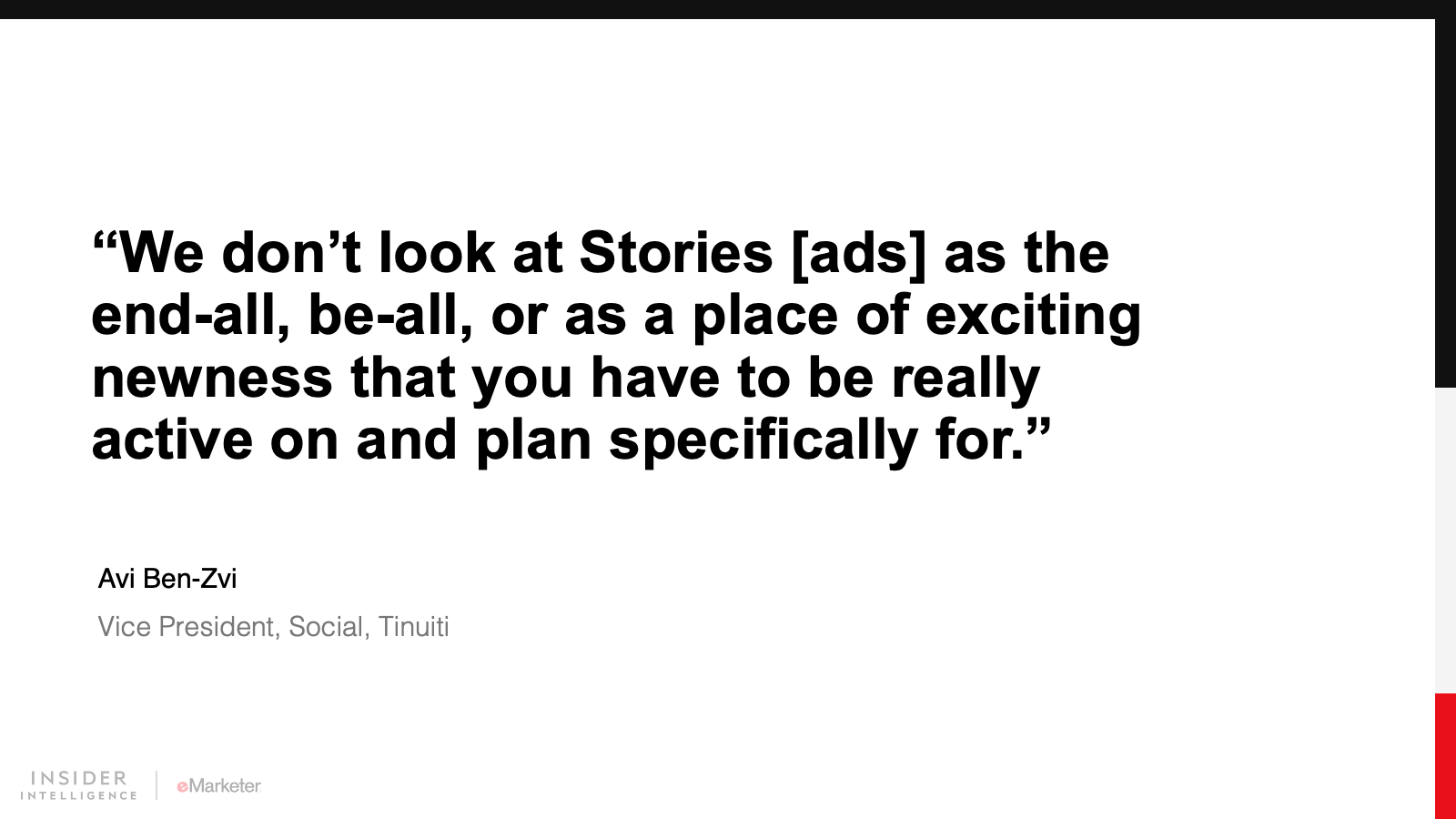 We expect Instagram and its siblings will bring more social commerce features to Stories. We also foresee more video and interactivity. The rise of short-form video is something to keep an eye on, but we believe the uniqueness of the Story format will help it solidify its place as an important venue for social media marketing.