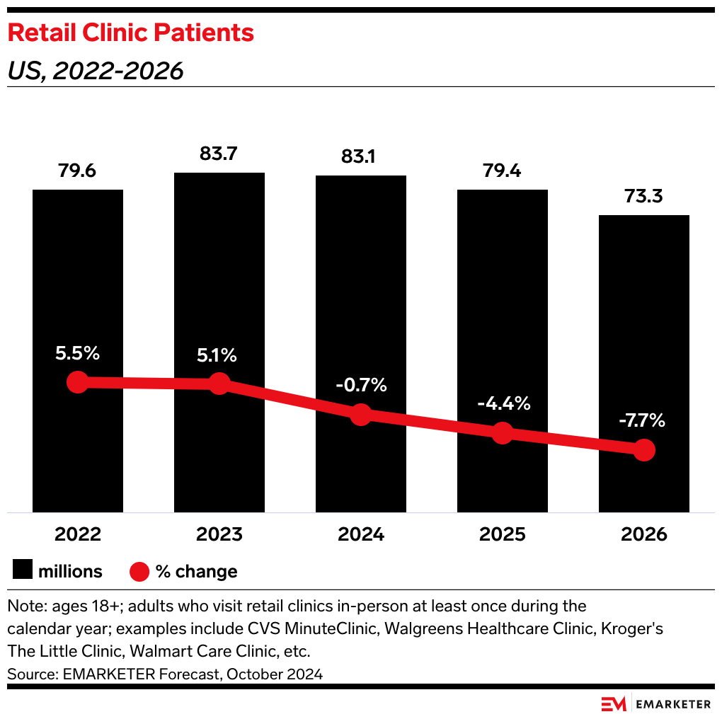 Bain's survey affirms our updated retail health forecasts, which estimate that fewer US adults will visit a retail clinic each year through 2026.