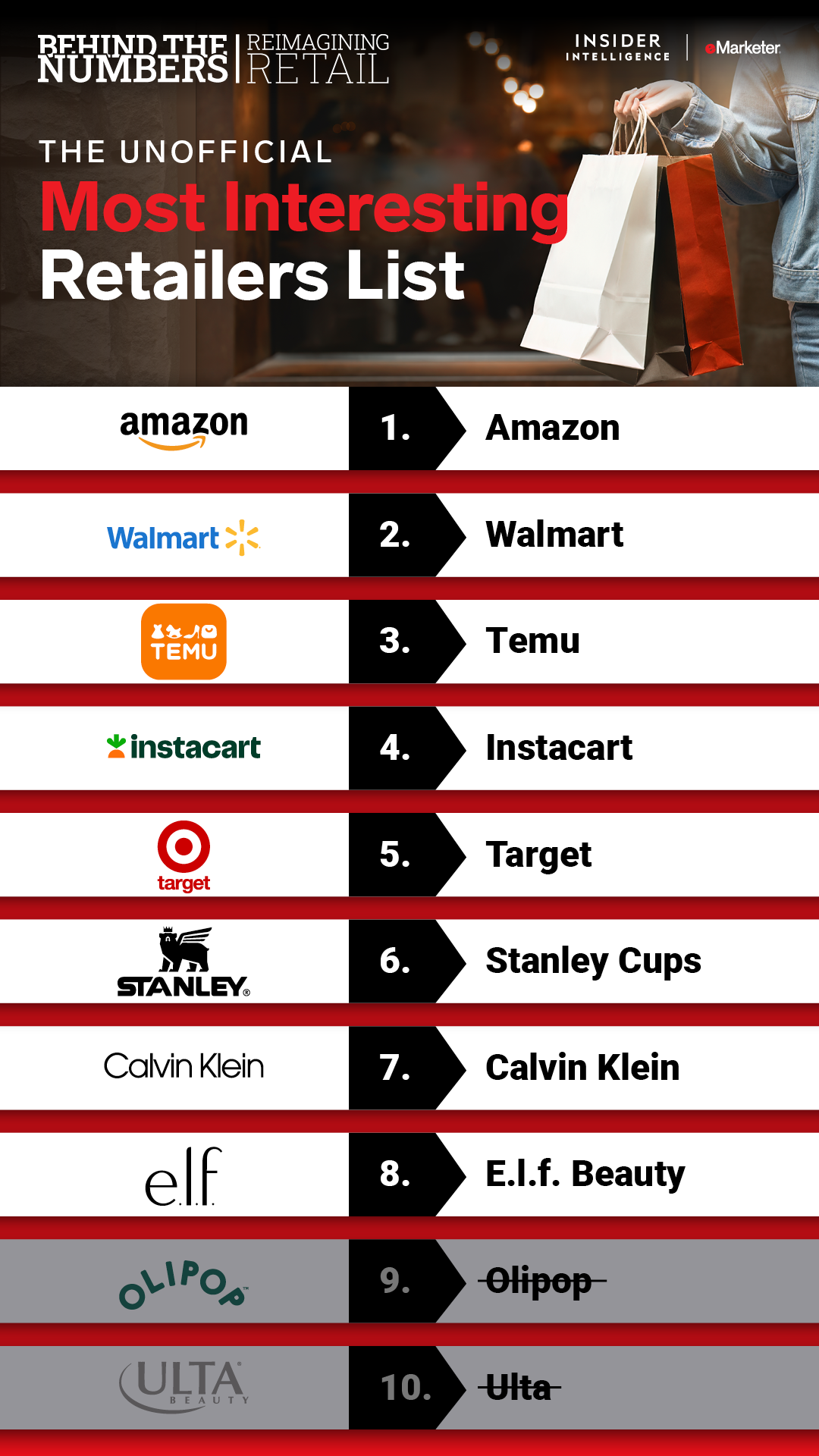 At a time when every brand is trying to out-innovate their competitors, these eight retailers are creating the buzz. We give you our inaugural "Unofficial” Most Interesting Retailers List, as ranked on an episode of “Behind the Numbers: Reimagining Retail” podcast.