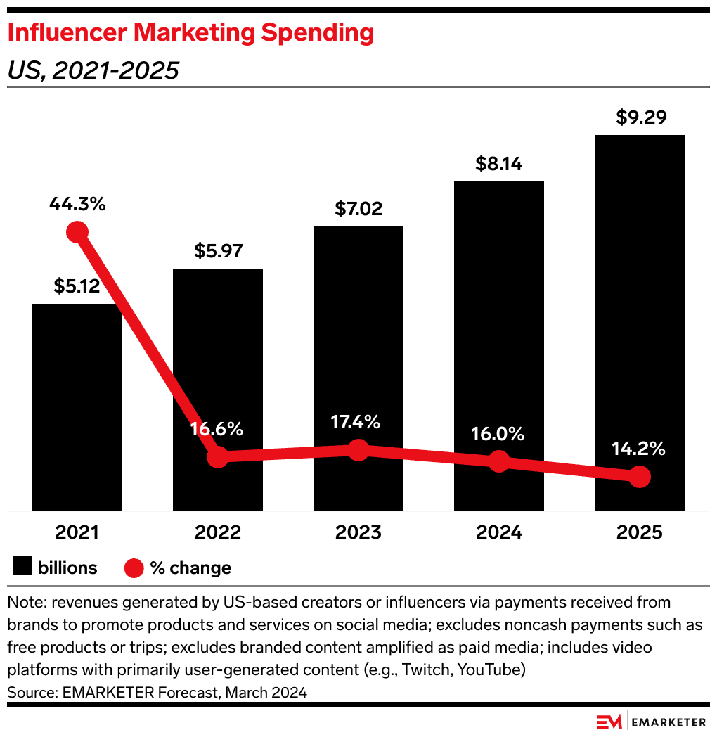 Influencer marketing can help payment brands shore up their marketing strategies now before their ad budget growth slows. After climbing 14.2% this year, payments digital ad spending will grow just 8.5% in 2025, per our forecast. Creator content can help marketers do more with less—especially when it comes to building brand awareness and tapping younger audiences.