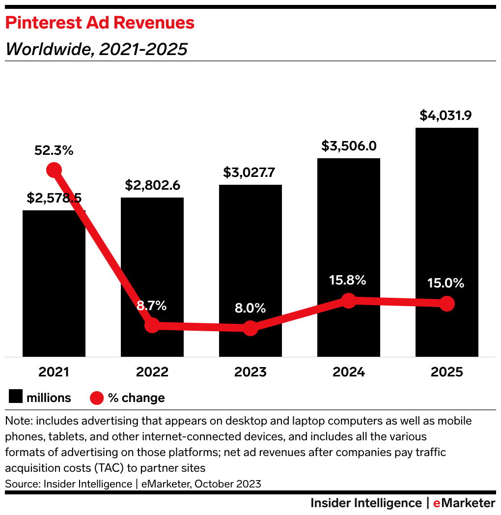 Looking ahead: Pinterest anticipates Q1 2024 revenues in the range of $690 million to $705 million, which would represent 15% to 17% YoY growth.