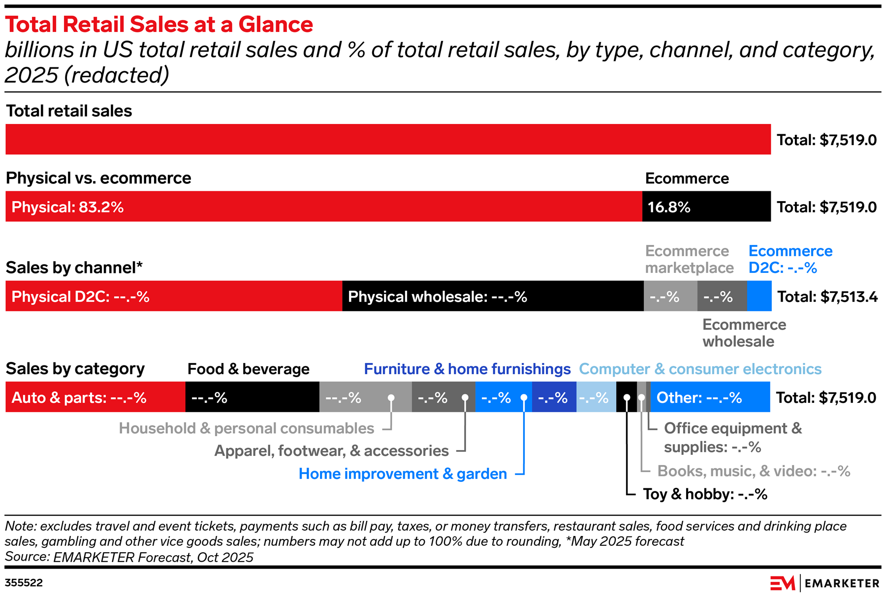 Our “Retail and Ecommerce Sales Benchmarks” series provides retailers with critical data to help benchmark their own sales against the market. In the Q4 2025 edition, we focus on our latest US forecasts for total retail, ecommerce, holiday, grocery, apparel, Amazon, and worldwide sales, with a deck devoted to each topic.