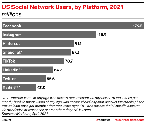 KEY STAT: With 78.7 million monthly US users in 2021, TikTok is ahead of Twitter and gaining on Snapchat. It still lags well behind Instagram and Facebook, however.