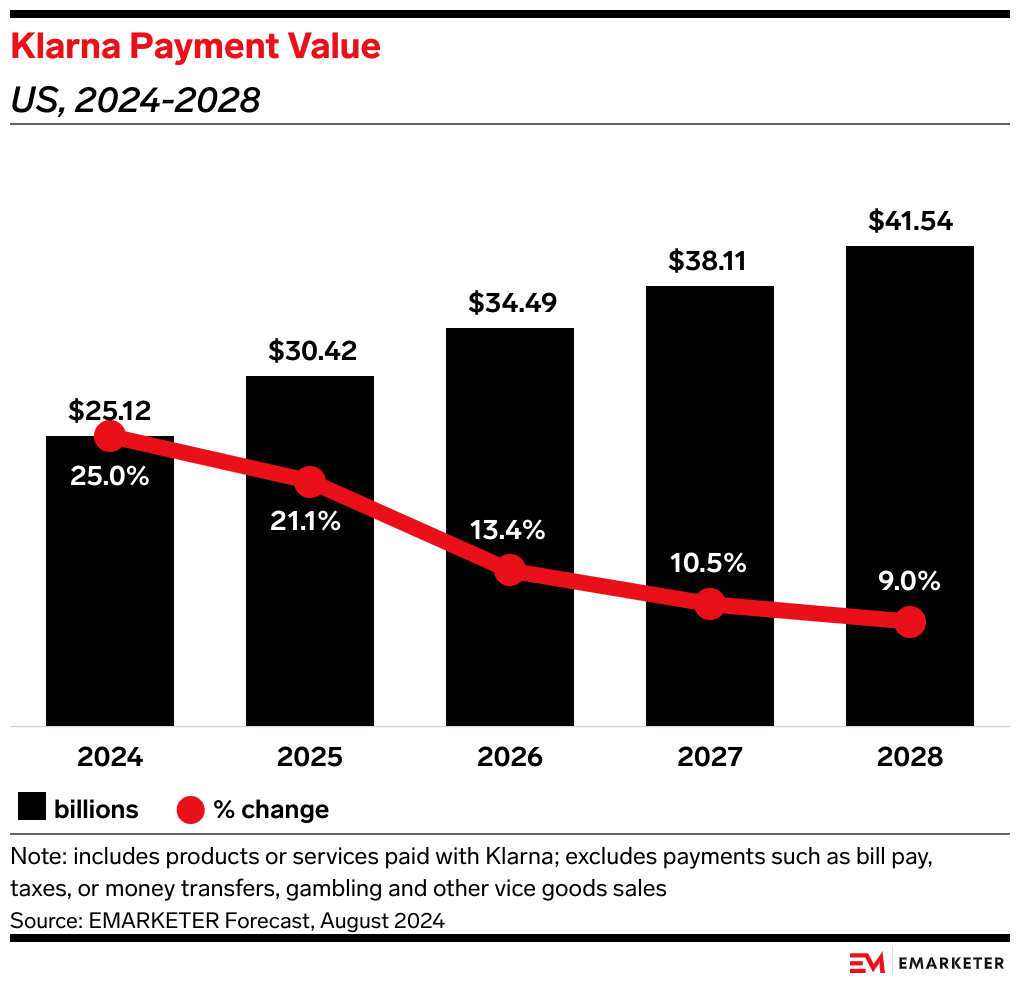 Our take: This tie-up can help give Klarna a payments volume boost ahead of its long-awaited IPO. We expect Klarna’s US payment value will total $30.42 billion in 2025, per our forecast.