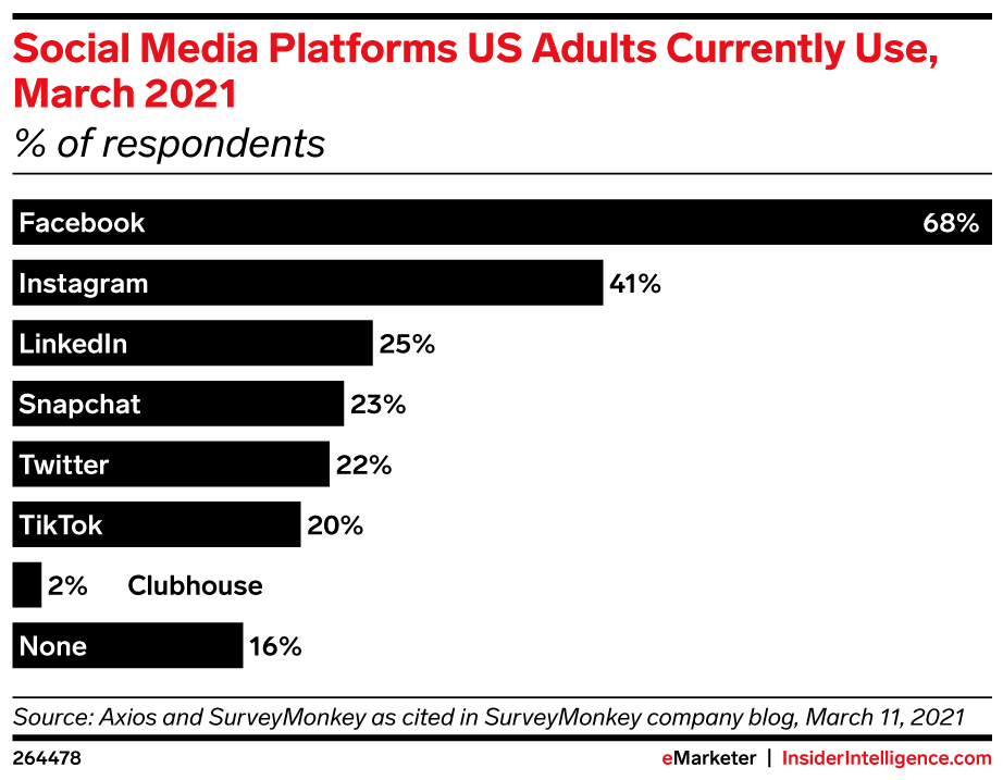 This post was updated on April 1, 2021 to accurately reflect the number of users who reported using either Clubhouse or None of the above.