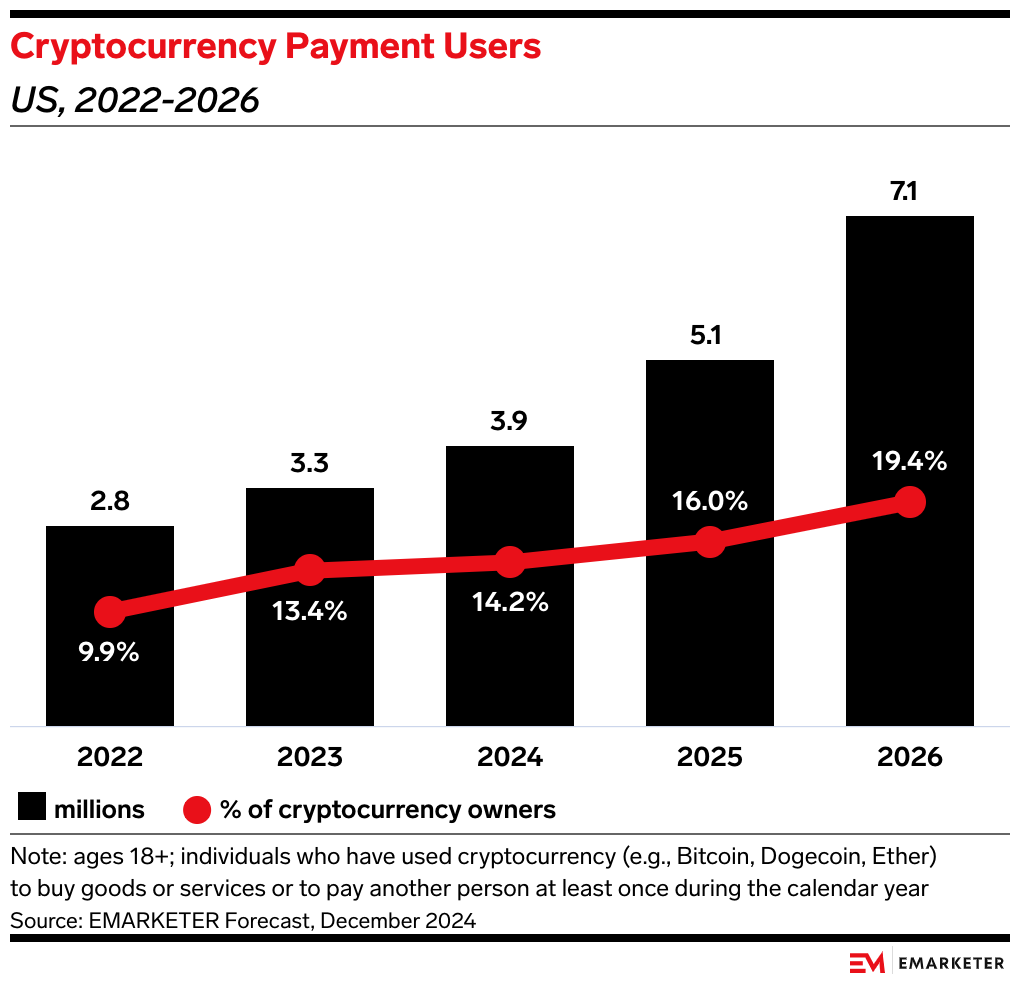 Why this matters: We predicted that crypto payments would get a boost during Trump’s second term. His administration is expected to bring industry-friendly regulatory clarity that could help crypto ownership and payments grow.