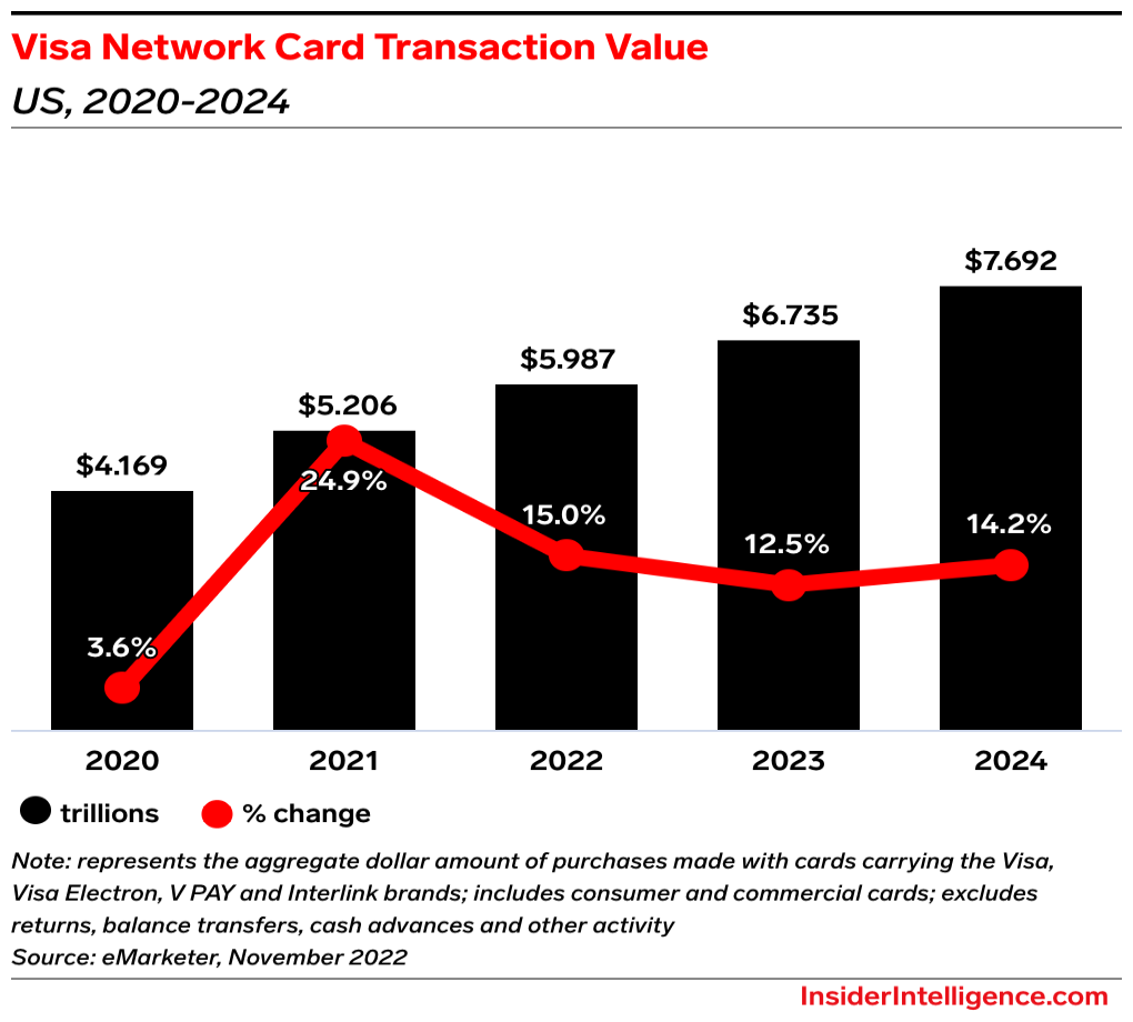 Looking ahead: Kelly will step down as CEO, succeeded by Visa president Ryan McInerney in February. McInerney will oversee the company’s growth efforts, which include expanding via acquisitions: During the earnings call, Kelly suggested that falling fintech valuations are an opportunity for Visa to make acquisitions.