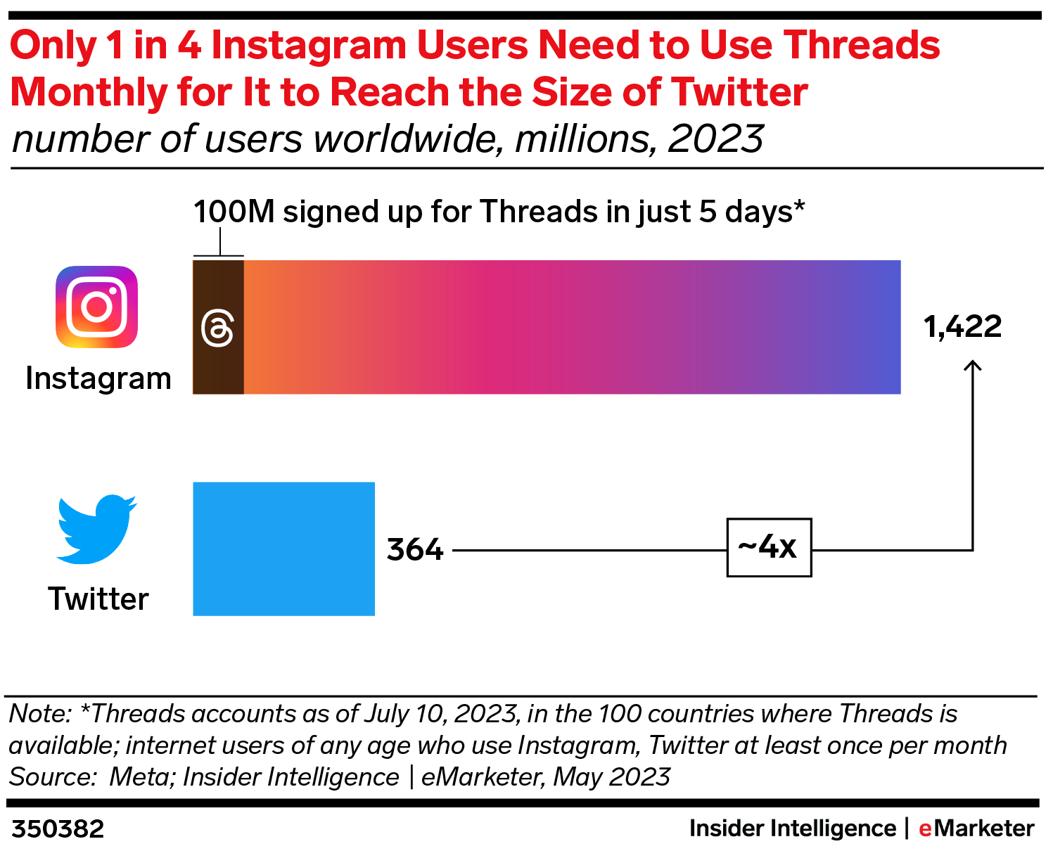 Yaccarino’s job just got exponentially more difficult. After months of not spending, many advertisers have realized that they simply don’t need Twitter to reach their goals and have been looking for a replacement. Twitter ads will be an even tougher sell if there is a perceived alternative with an engaged user base—and with the power of Meta’s ad platform, targeting capabilities, and brand safety tools behind it.