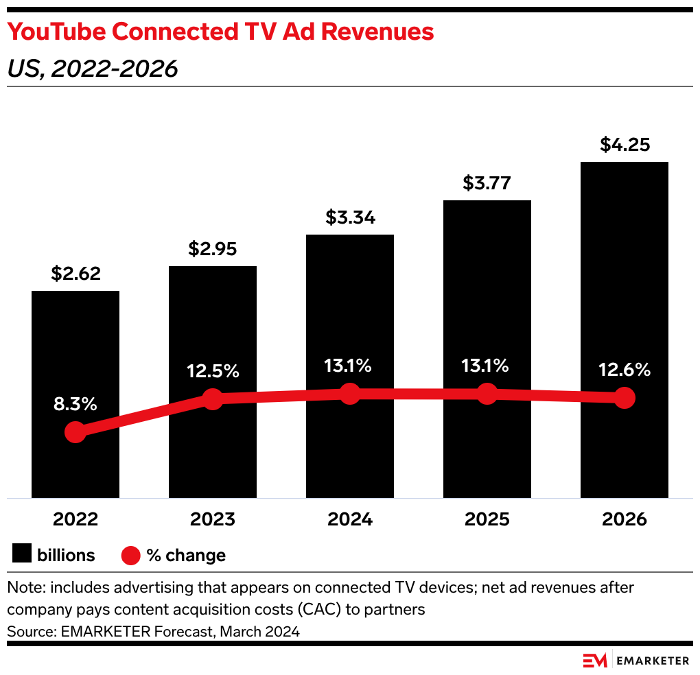 Our take: As it continues to make major inroads in turning connected TVs into a key consumption vehicle, YouTube's TV app updates position it as a strong competitor to streaming giants like Netflix—while maintaining a key advantage against other UGC players like TikTok and Meta, who don’t dominate the living room nearly as much.