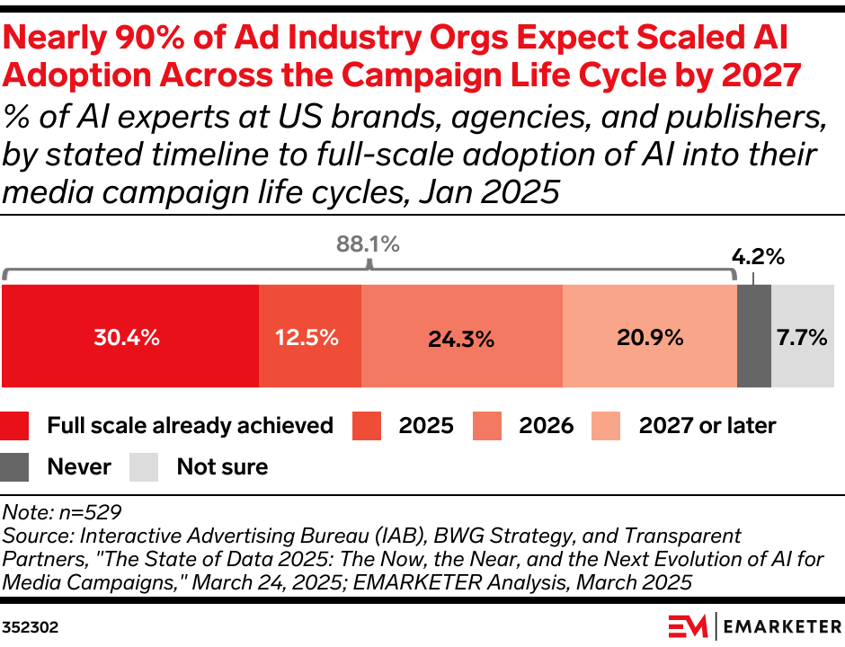 The trend: At Cannes Lions 2025, Meta, TikTok, Google, and others made clear that AI-powered ad automation is no longer an experiment—it’s the plan. The news: Meta and TikTok each emphasized agency relationships, but both platforms expanded generative AI tools that let brands generate and manage campaigns without intermediaries. Amazon, Comcast, and Google are doing the same, pushing toward platform-native, self-serve ad models. Our take: As automation replaces traditional support services, agencies face existential pressure. To stay relevant, holding companies will need to prove they offer value that AI can’t replace—fast.