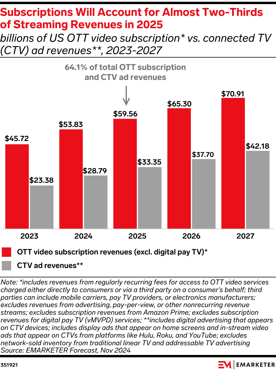 The news: Instagram and TikTok are working on plans to develop connected TV (CTV) apps to mimic the success of YouTube’s big-screen push, per The Information. Our take: Advertisers may be hesitant to spend on placements before user adoption is proven. TikTok and Meta should prepare for initial losses and, to ensure a robust content pipeline for TV, introduce new simple editing tools or financial incentives to help creators optimize vertical posts for the horizontal big screen.