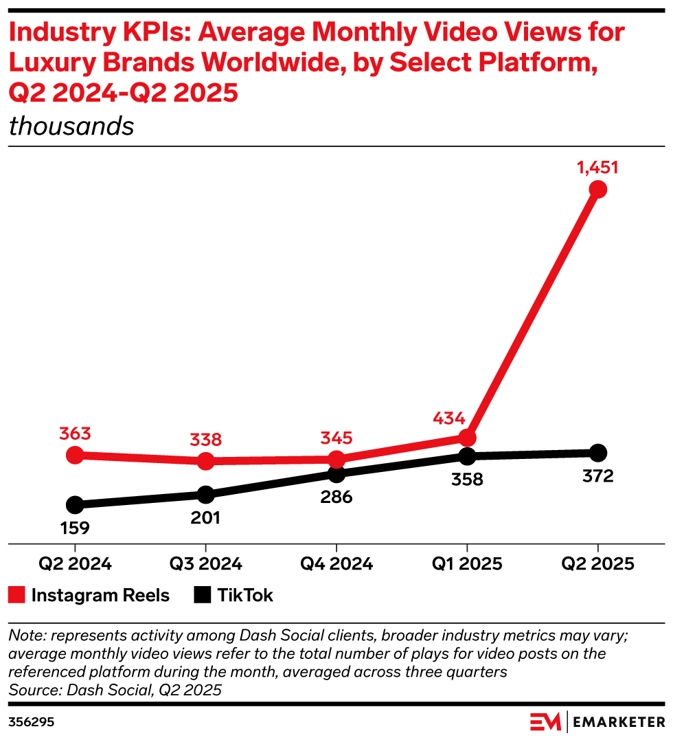 Reels video views for luxury brands grew 234% in Q2 2025, while TikTok slowed as brands face a shift that necessitates a rebalance in content distribution.