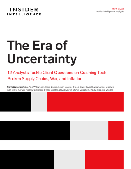 How should businesses view these global trends and events? How are behaviors and spending changing? In this report, Insider Intelligence analysts weigh in on the questions they’re being asked by both clients and the media about the shifting landscape in key areas like digital advertising, retail and ecommerce, and financial services.